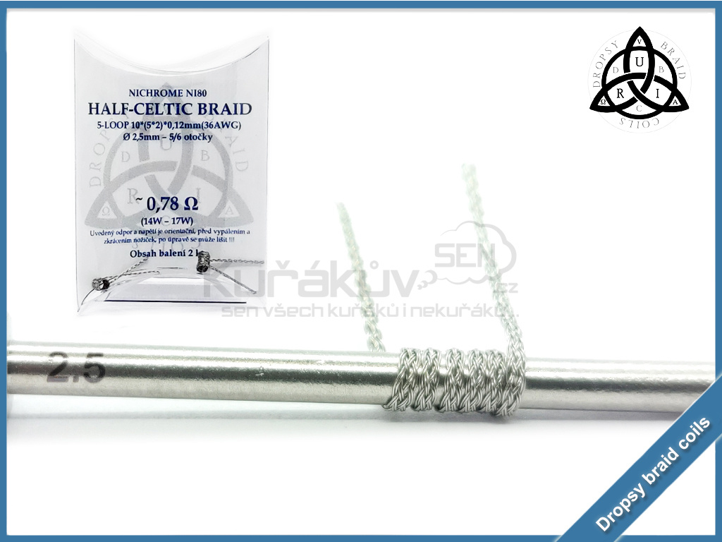 5-loop Half-Celtic braid 10*(5*2)*0,12mm(36AWG) - Ni80 - 0.78 ohm - 2 ks