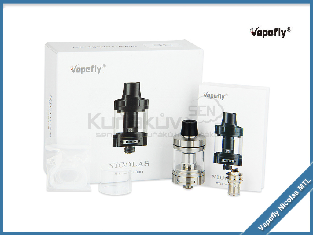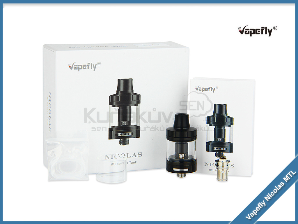 Objem tanku činí 3 ml, jedná se o poměrně velkou kapacitu, kterou ocení zejména uživatelé s vyšší spotřebou e-liquidu. Výhodou je také způsob plnění, clearomizér můžete kdykoliv doplnit odšroubováním vrchního uzávěru. Tento mechanismus je velice rychlý a doplněno budete mít během pár sekund. O ideální produkci páry se potom stará propracovaný systém airflow. Ve spodní části se nachází regulační kroužek pro detailní nastavení airflow. Ten nabízí pět regulačních otvorů s různými průměry a ještě jeden otvor navíc umístěný z druhé strany. Tuhost potahu si tak detailně přizpůsobíte svým představám. Vapefly Nicolas MTL je jedinečný clearomizér pro klasické šlukování s mimořádně jednoduchou obsluhou, překvapivě velkým tankem a především s vynikajícím podáním chuti.