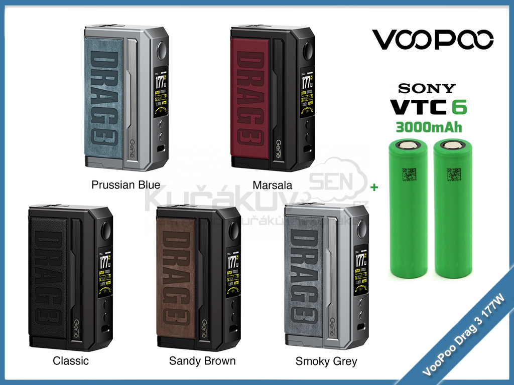 Elektronický box mod VooPoo Drag 3 177W + 2x Sony VTC6 3000 mAh