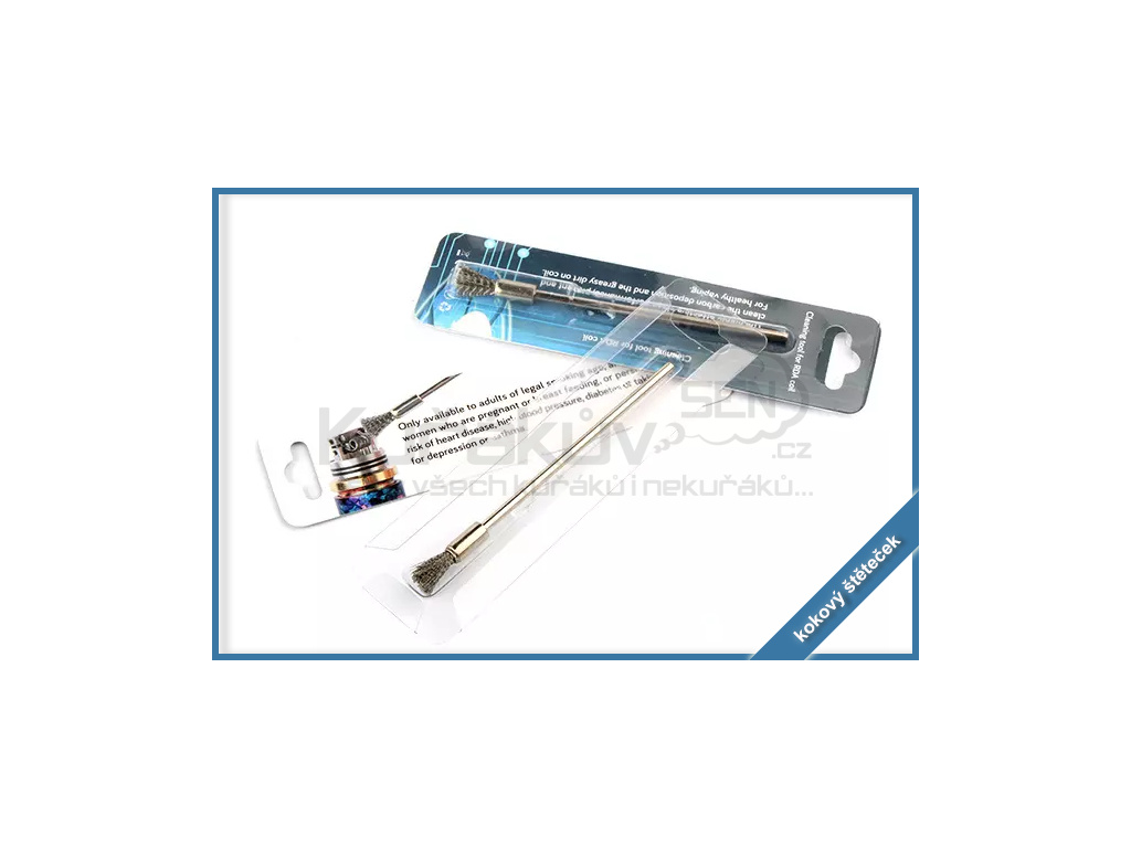 Kovový štěteček určený pro čištění použitých spirálek v DIY atomizerech.