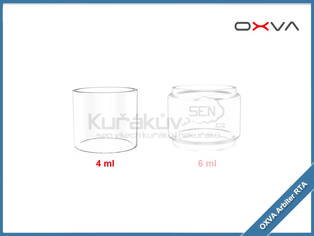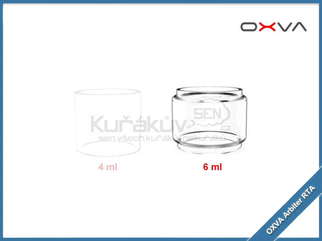 Náhradní pyrexové tělo OXVA Arbiter RTA je kompatibilní se stejnojmenným atomizerem. Na výběr je ze dvou velikostí, klasické 4 ml a bubble sklo s objemem 6 ml. Sklo lze použít v případě rozbití, nebo poškození stávajícího skla. Tělo je vyrobeno z kvalitního borosilikátového skla, které výborně odolává vysokým teplotám uvnitř tanku.