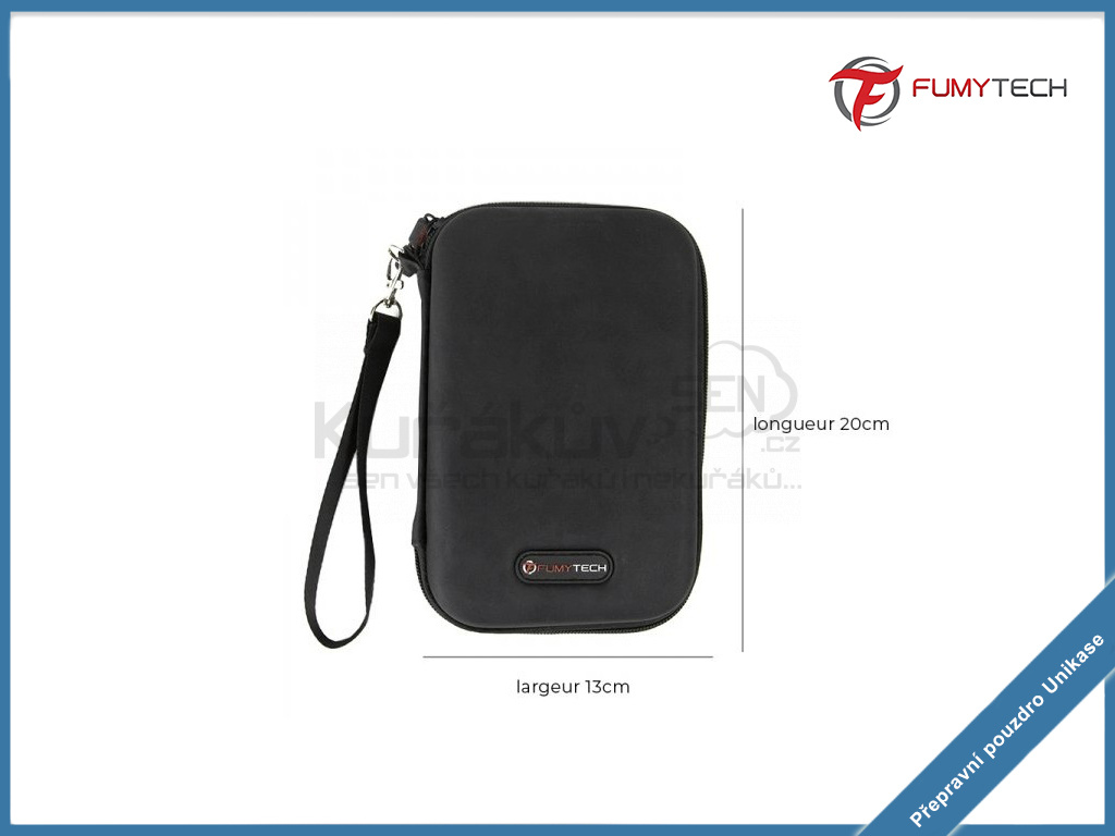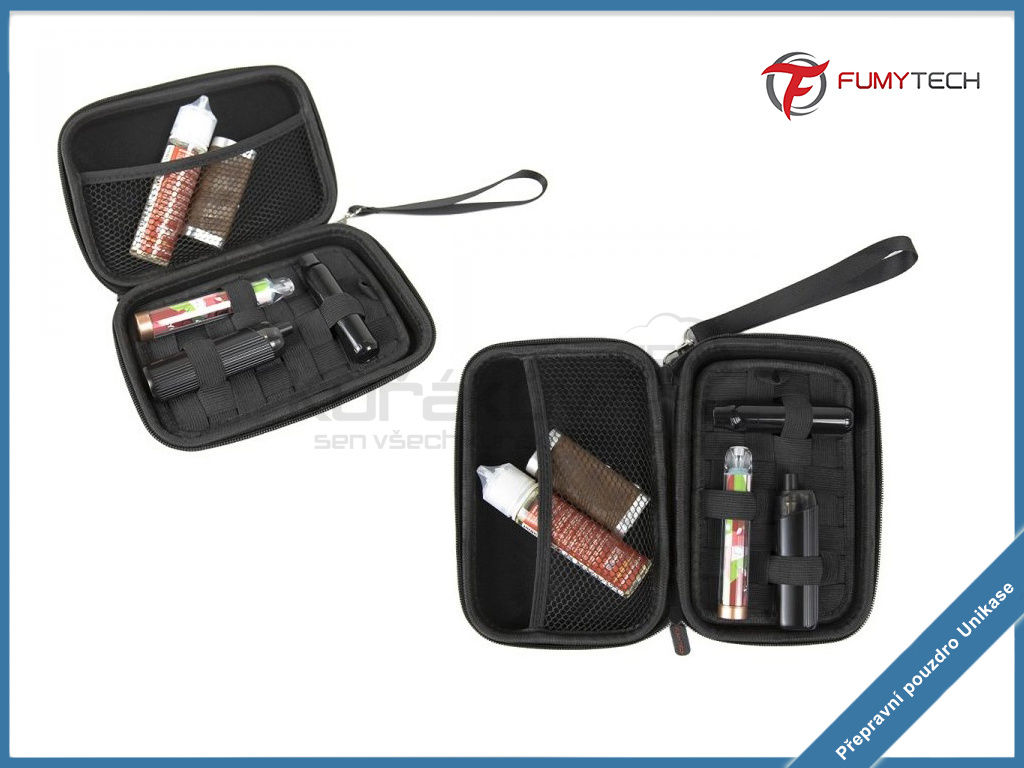 Unikase Fumytech je multifunkční, víceúčelové pouzdro pro uschování a přenášení vašeho gripu či elektronické cigarety včetně příslušenství. Toto nastavitelné pouzdro si přizpůsobíte podle sebe pomocí odnímatelné vložky, na které jsou uchyceny gumové pásky. Pouzdro obsahuje ještě jednu velkou síťovanou kapsu. Pouzdro je vyrobeno z pevného materiálu, a tedy váš grip a případně i příslušenství budou v bezpečí.